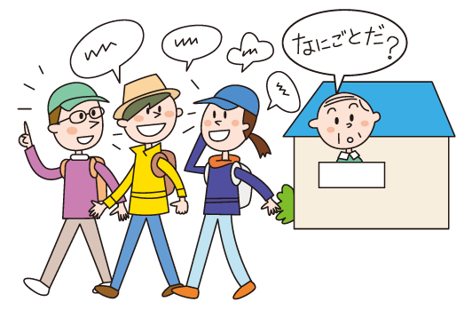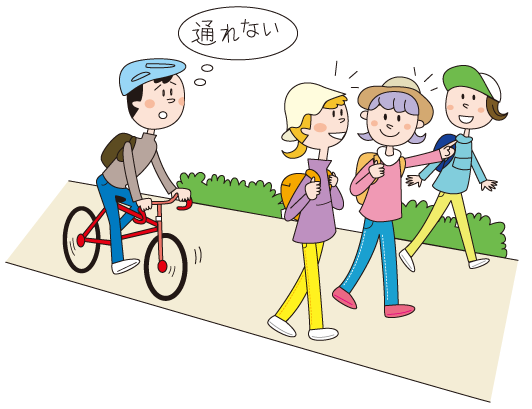 横に広がったり、道路をふさいで歩いたりすると、他の歩行者や車両の迷惑になります。