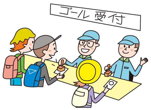 ゴール受付にて、スタンプカードにスタンプを押し、参加者カードの回収を行います。